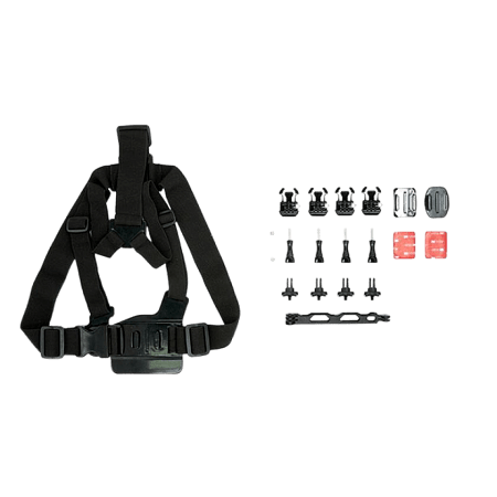 Комплект Insta360 Snow Bundle включает в себя плоское клейкое крепление для шлема (включая удлинитель) и нагрудный ремень. Крепеж идеально подходит для съемки в заснеженной местности.